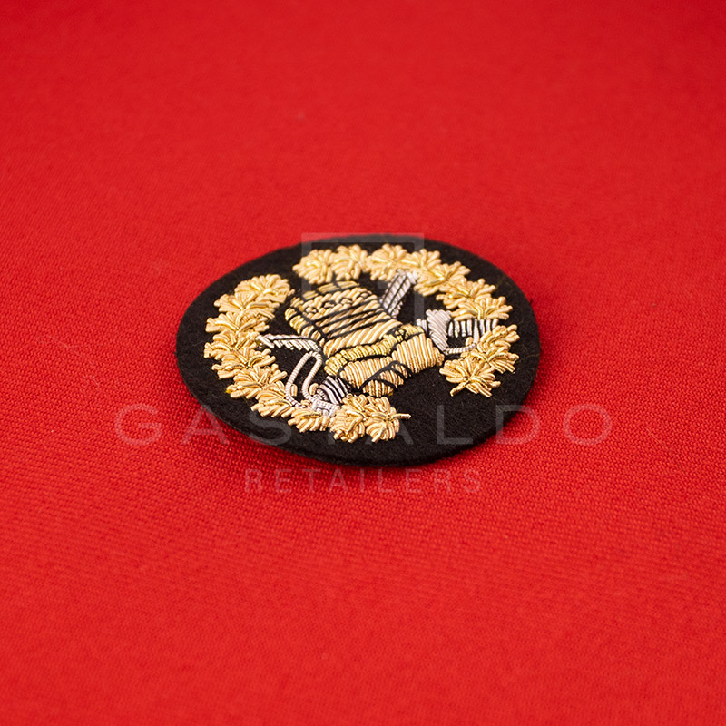 Our Tactical Troop badges are RCMP regulation compliant, embroidered with gold bullion wire, onto black uniform felt, often purchased for use on RCMP Red Serge (Scarlet Tunic).